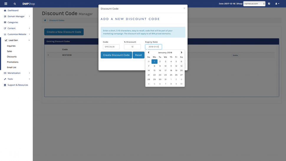 Discount codes can also be included in conjunction with the domain promotion landers to run campaigns on social media.
