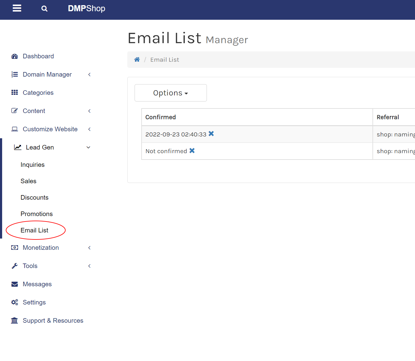 You can have separate email lists for each DMP shop in your account. This is ideal if you operate niche shops and target specific markets, in addition to your primary shop.